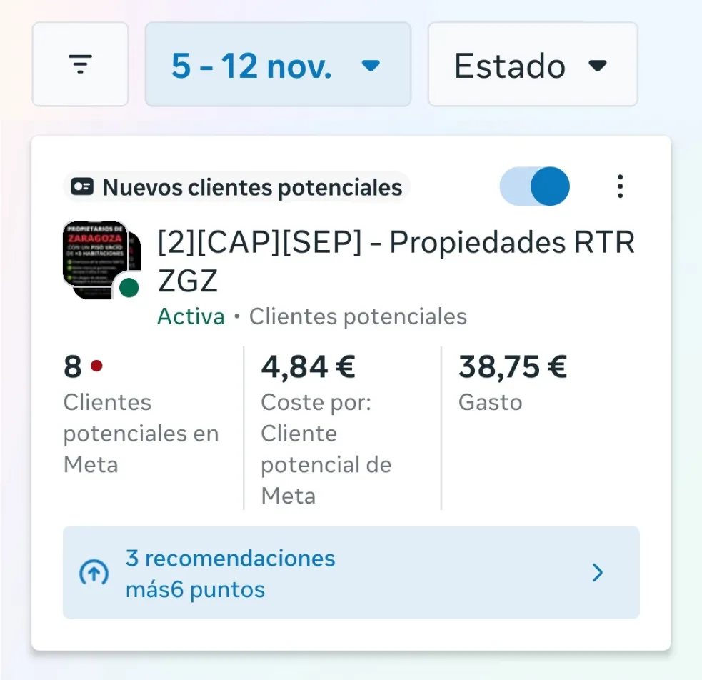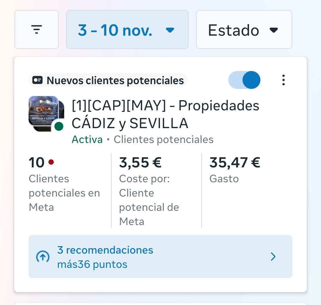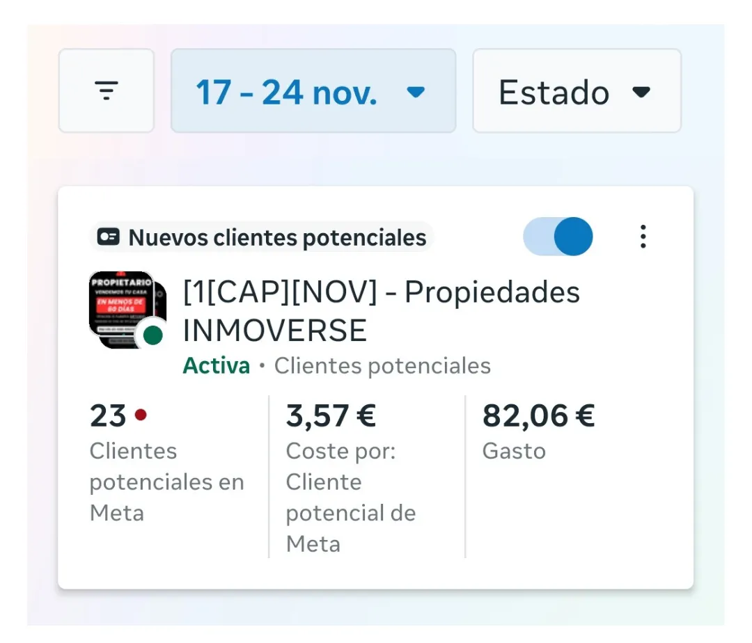 Lo que ves a los lados son resultados reales de campañas de inmobiliarias y agentes de toda España con las que hemos trabajado